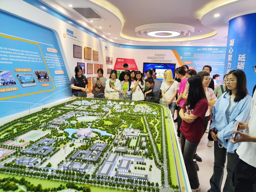 在广西现代物流集团规划展示馆,通过讲解员的介绍和集团宣传片,同学们了解了集团的发展历程、组织架构和老王磁力,对其在物流、环保、机电、职业教育等多领域的实力与影响力有了直观认识。