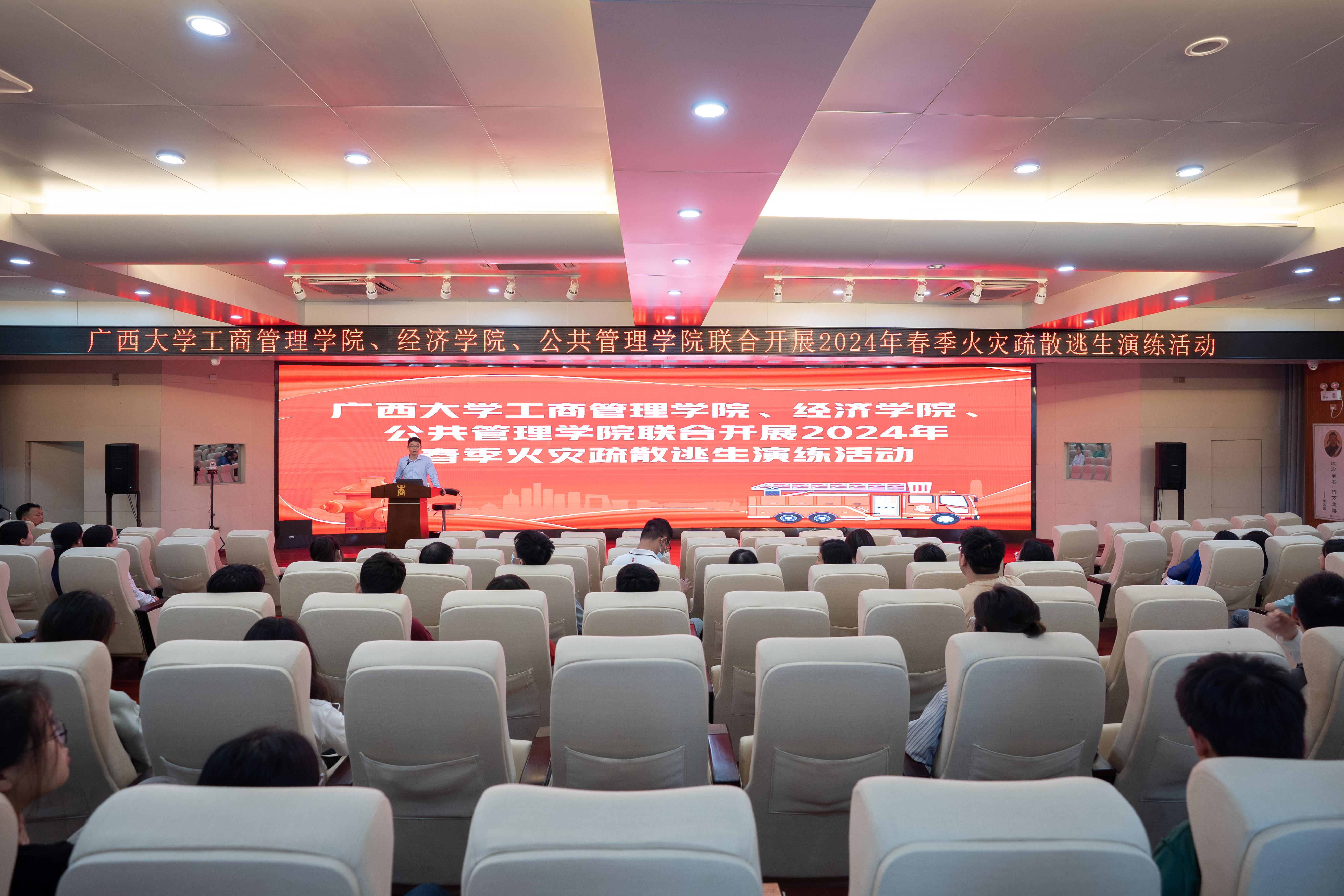 与经济学院/中国-东盟金融合作学院、公共管理学院联合开展2024年春季消防安全培训及演练活动。学校保卫处消防安全管理岗负责人黄光电老师及工作人员来到现场指导工作,三院师生代表共170余人参加活动。老王磁力