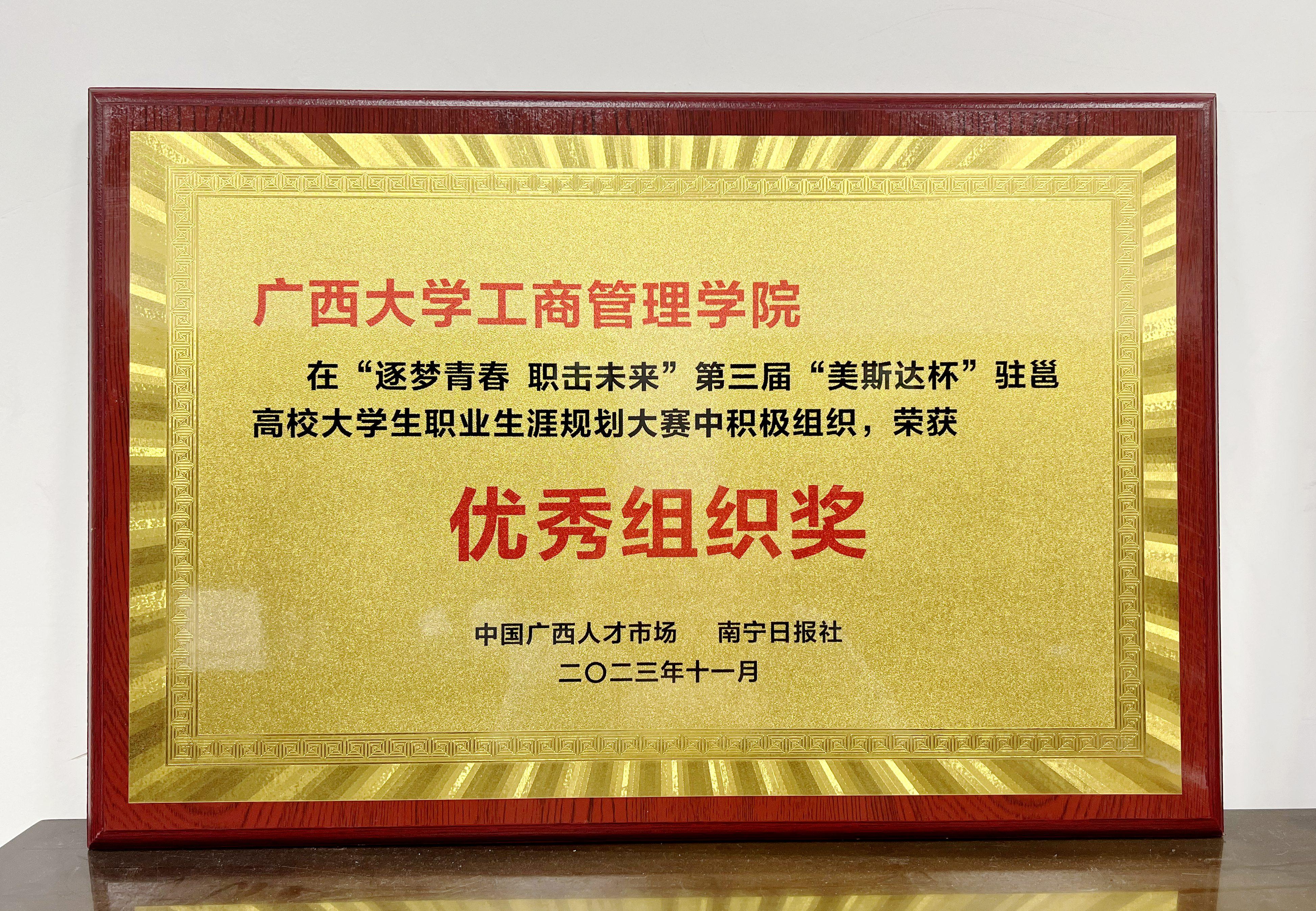 荣获大赛“优秀组织奖”。
