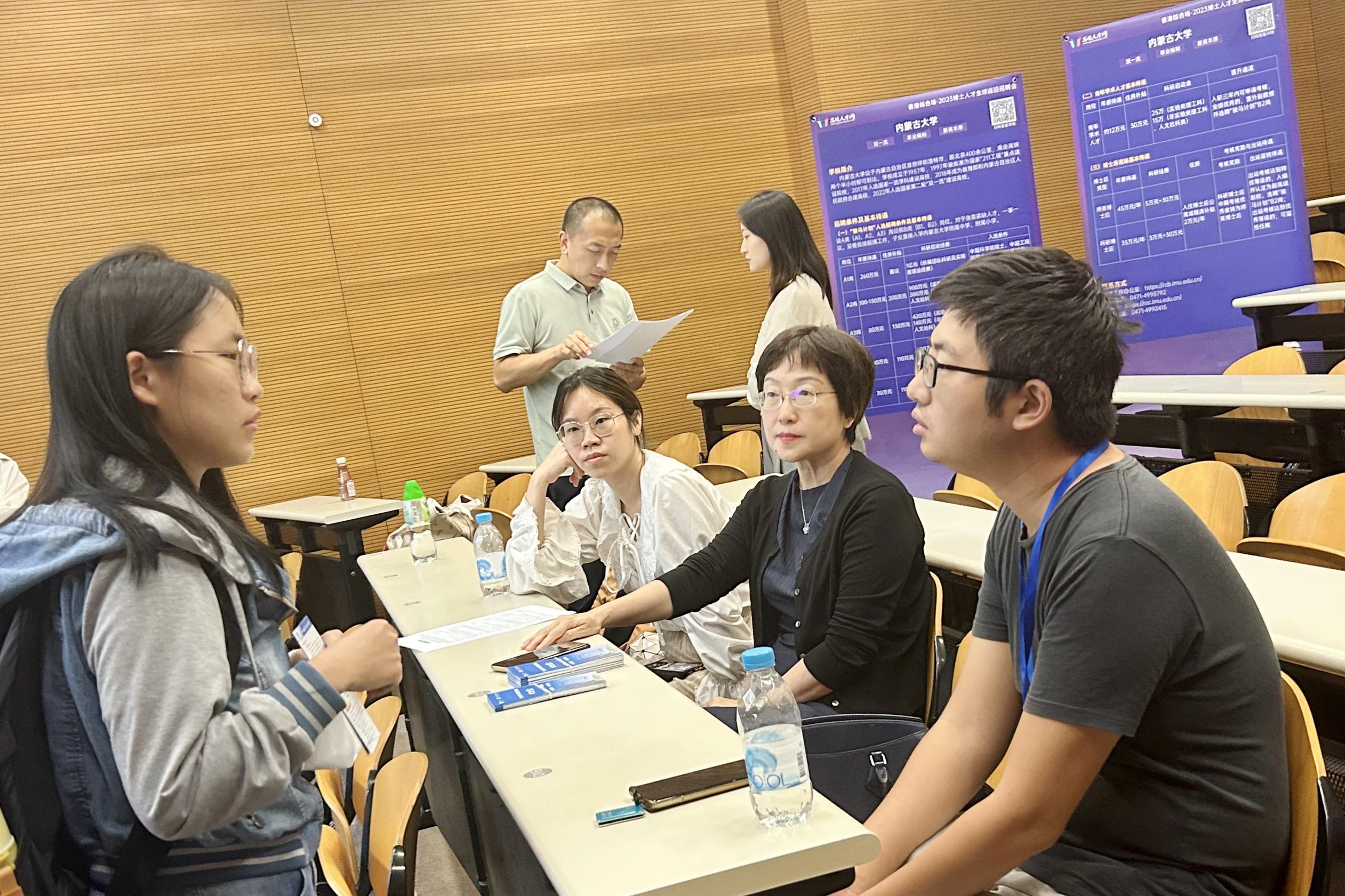 人才队伍,提升学术水平和社会影响力,10月17日至20日,学院副院长廖东红率专任教师何心巨、戴秋慧前往香港参加高校人才网2023博士人才全球巡回招聘会(香港站),先后到香港大学、香港中文大学、香港科技大学、香港理工大学、香港浸会大学等五所知名高校进行了参访交流。