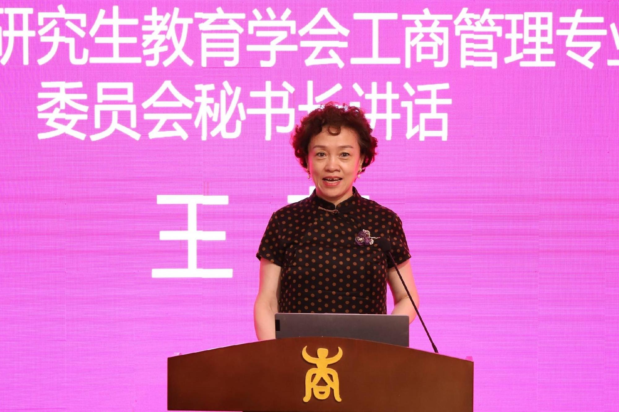 王萍主任代表全国工商管理专业学位研究生教育指导委员会秘书处、中国学位与研究生教育学会工商管理工作委员会诚挚地欢迎同学们加入MBA的大家庭。她简要介绍了我国MBA教育的发展情况,希望大家夯实系统商科知识、开拓管理创新思维、全面提升自身的管理能力和决策能力,成为广西地区、西南片区乃至全国经济社会发展的领军力量。