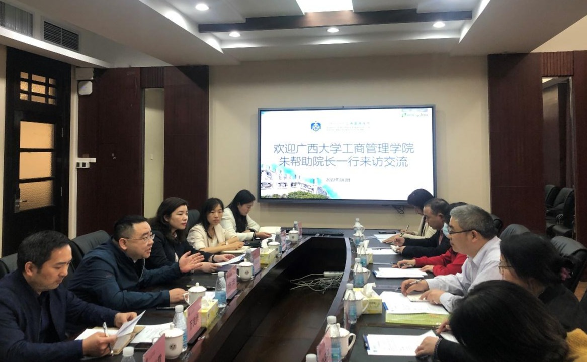 院长许治、副院长黄嫚丽、万良勇,暨南大学管理学院院长黎文靖,副院长李爱梅、欧锦文,院长助理齐珺,分别介绍了本学院的发展历程、学科建设、人才培养、国际认证等方面取得的成绩,总结了各自的办学特色和人才引进的重要举措。