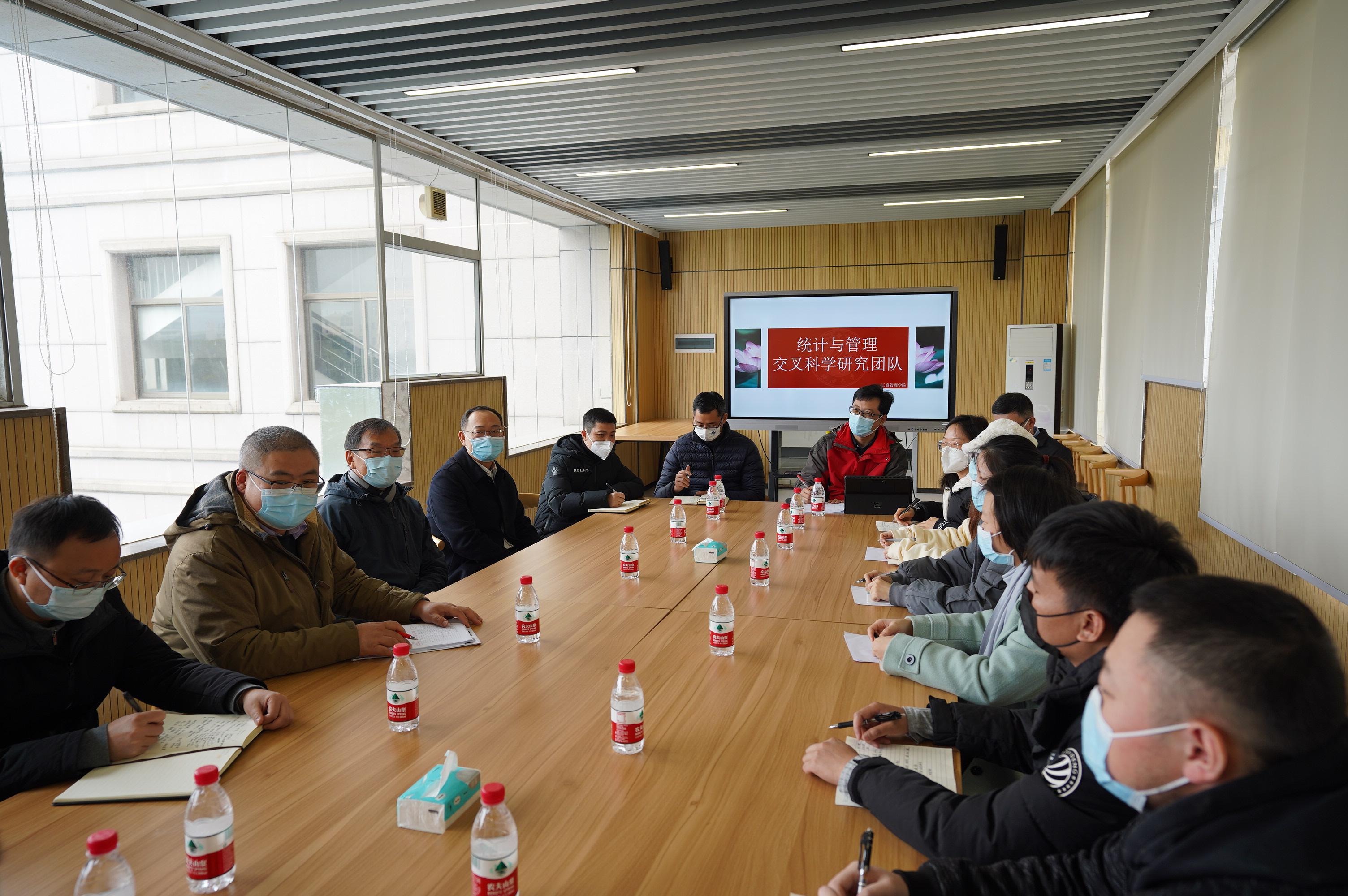 统计与管理交叉科学研究团队负责人朱帮助教授近期获批国家自然科学基金专项项目和获得广西第十七届社科优秀成果奖一等奖表示祝贺,他关切地询问学院的学科发展,鼓励老师们发挥学科交叉优势,提升服务国家战略、区域战略的能力,为学校“双一流”建设添砖加瓦。接着,韩校长与学生代表们亲切交谈,详细询问他们的学习、生活情况,勉励他们踔厉奋发,勇毅前行,以优异的成绩完成学业。韩林海指出,认真就是能力,扎实就是水平,要坚持精益求精、守正创新,以“清晰、清楚、清醒”的境界把好论文质量关,学院和学校的发展离不开广大师生的共同努力,希望大家继续发扬吃苦耐劳的精神,为建设好学院和学校贡献自己的力量。