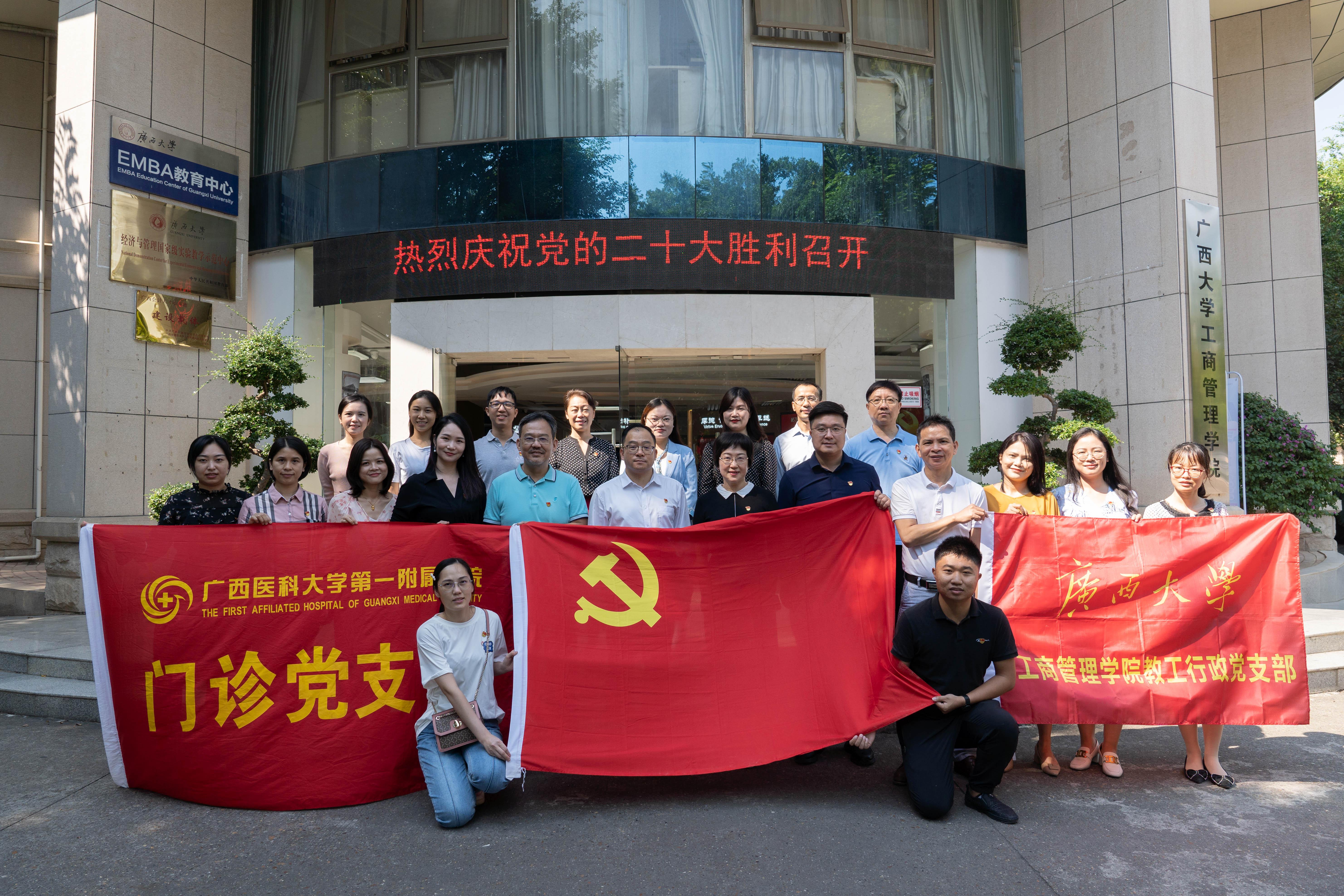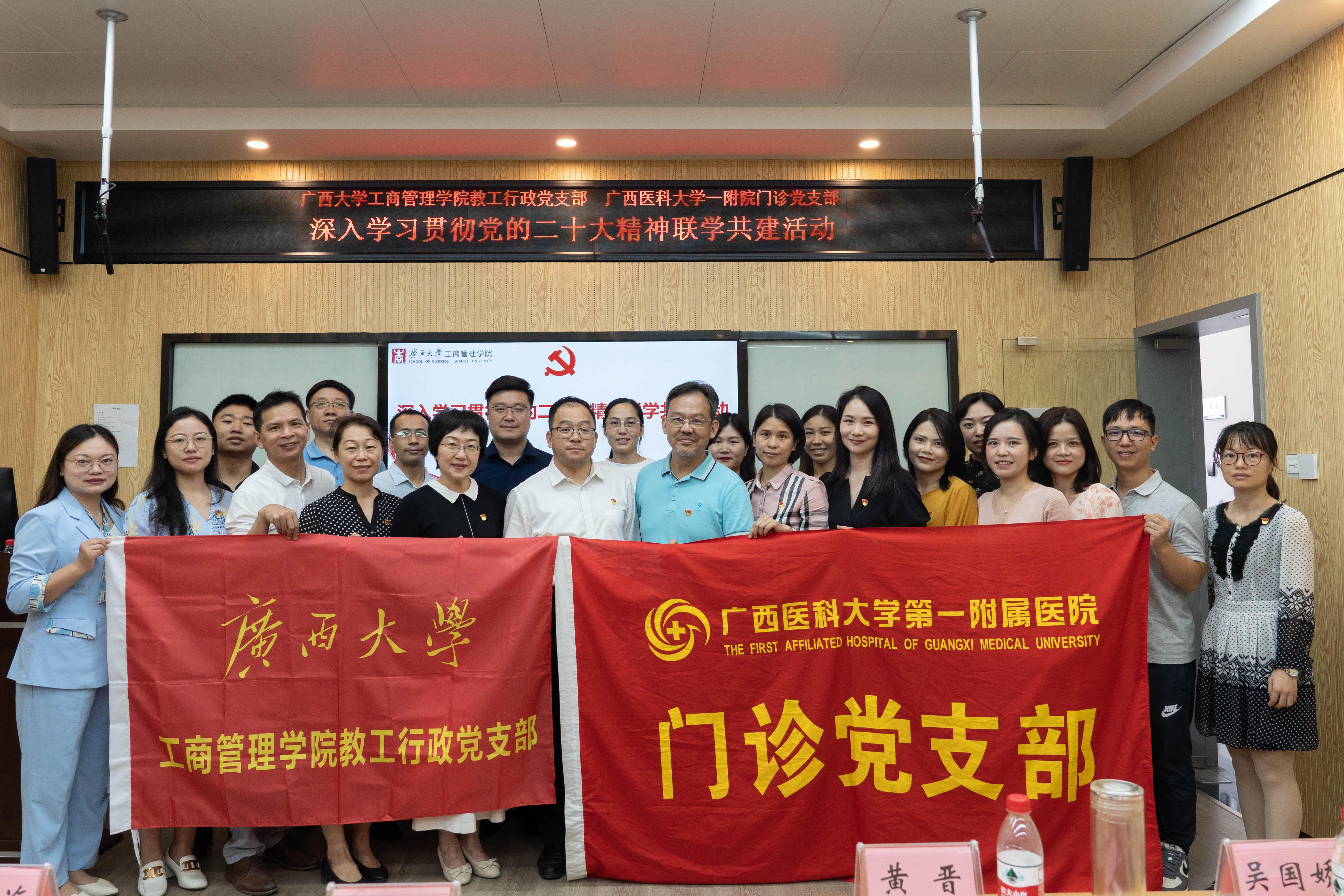 教工行政党支部与广西医科大学一附院门诊党支部联合开展深入学习贯彻党的二十大精神联学共建主题党日活动。学院党委书记罗诚以普通党员身份参加了本次活动。