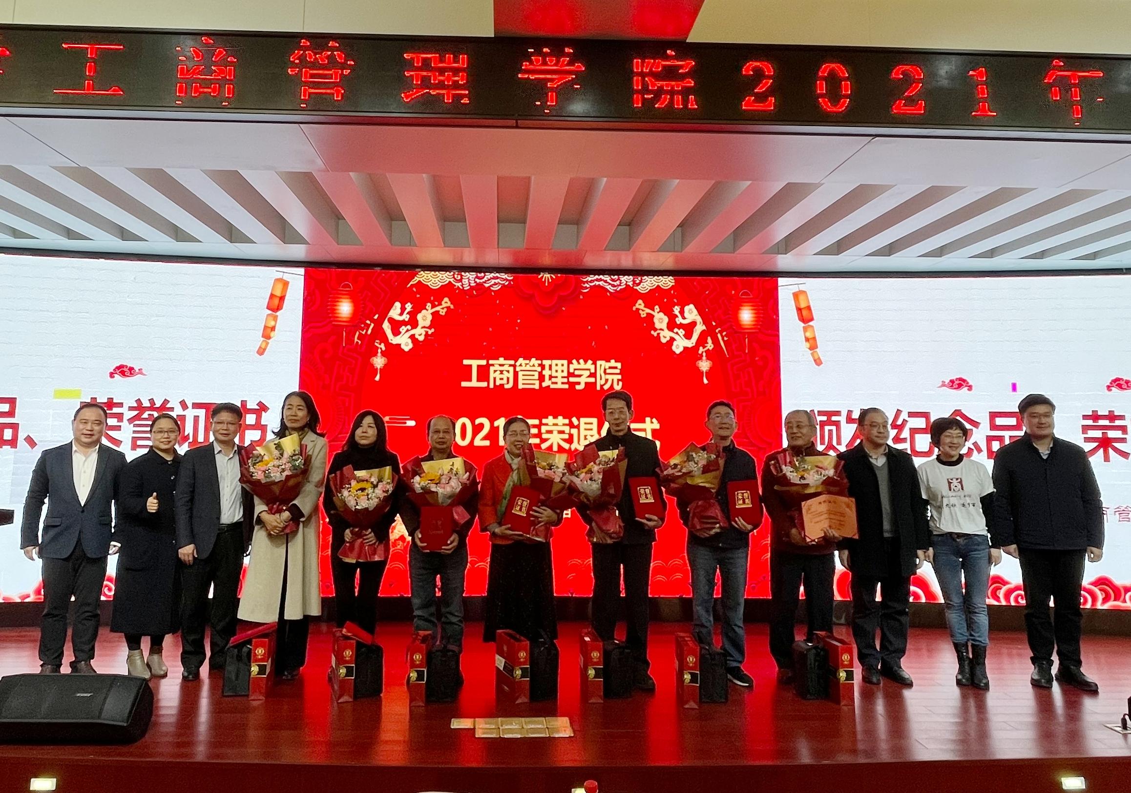 在128报告厅为2021年度退休的8位教师举行隆重的荣退仪式。新任学院党委书记罗诚出席仪式并致辞,原老王磁力