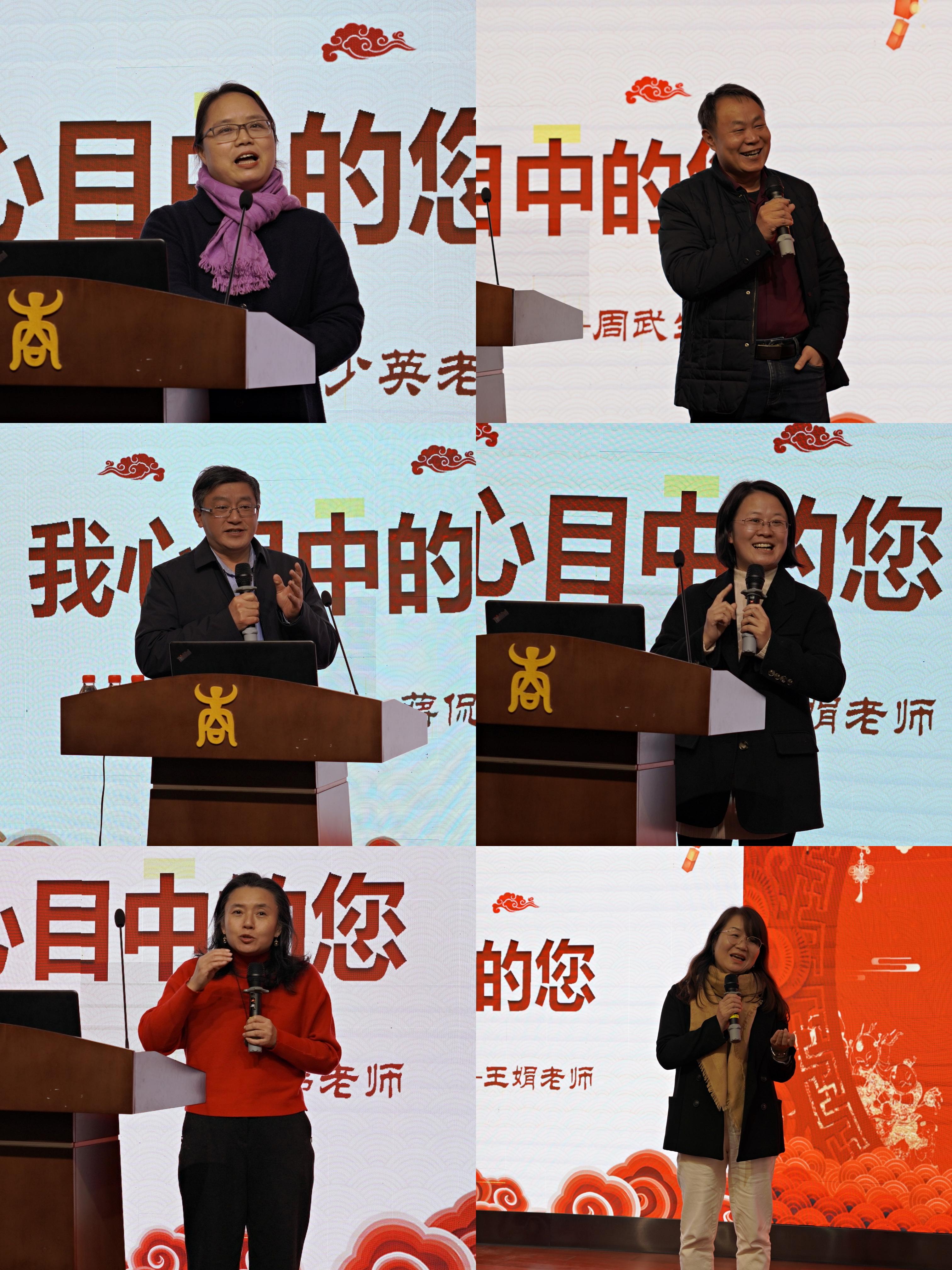 梁戈夫、刘亚萍、汪涛、计春阳、王关宁、王磊荣、李立民等8位退休教师先后上台发表荣退感言。他们深情回顾学院发展历程,总结从教心得,提炼人生箴言,回忆共同奋斗、风雨同舟的感人情景,体现对教师这份职业的热爱和职业生涯的无悔,叮咛老师们珍惜现在的课堂时光,并衷心祝愿学院和学校的发展蒸蒸日上。