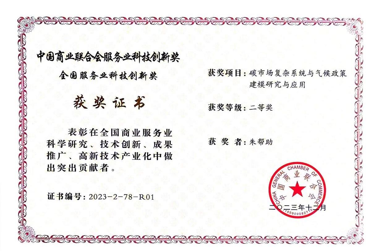 朱帮助教授团队获第十五届中国商业联合会服务业科技创新奖-全国服务业科技创新奖二等奖。