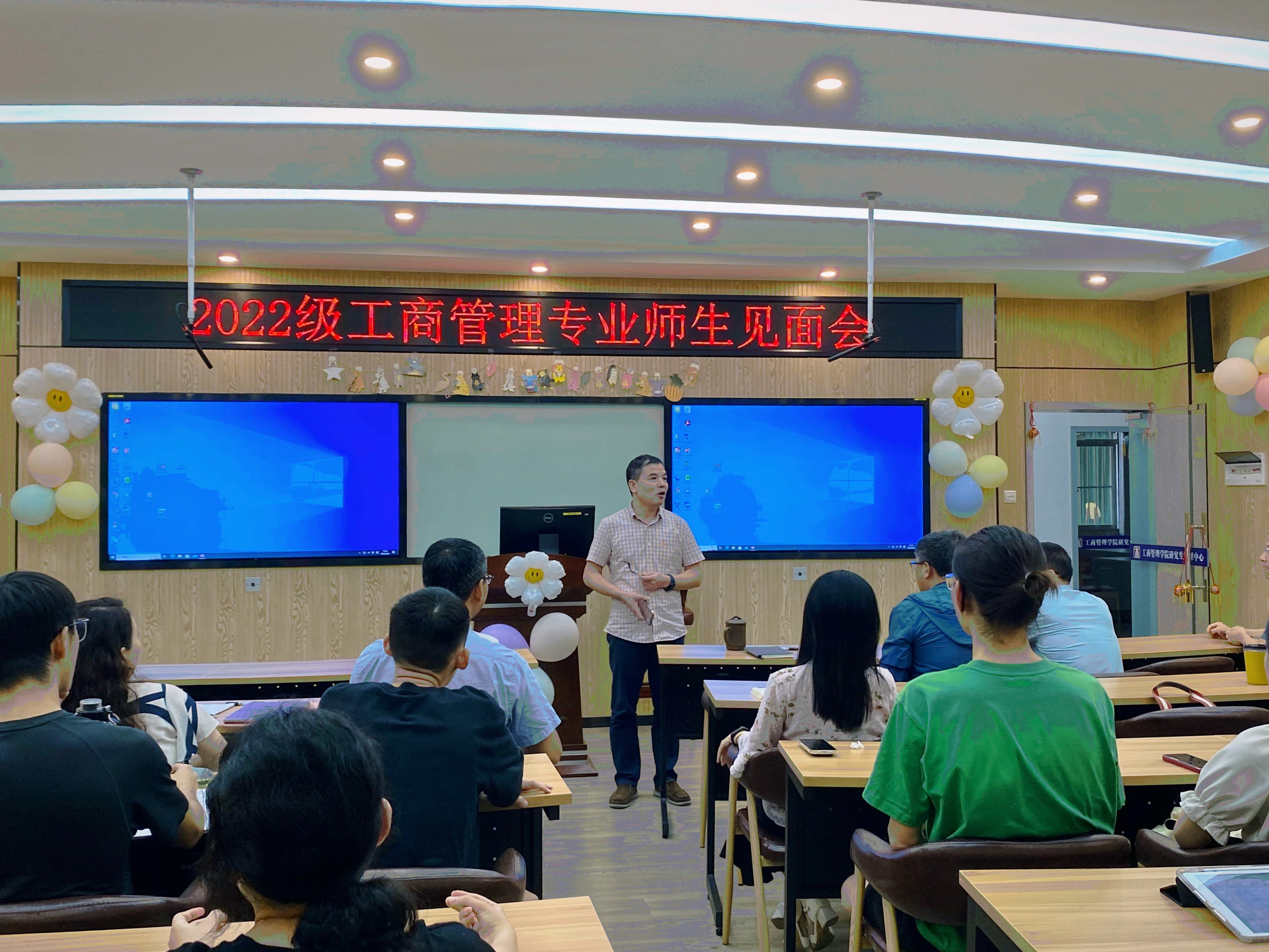 2022级工商管理专业师生见面会在学院509b教室召开。这是2022级专业分流后工商管理专业的全体师生的首次正式见面,旨在为同学们提供一个与导师接触、深入了解的机会,助力学生选择适合的导师。