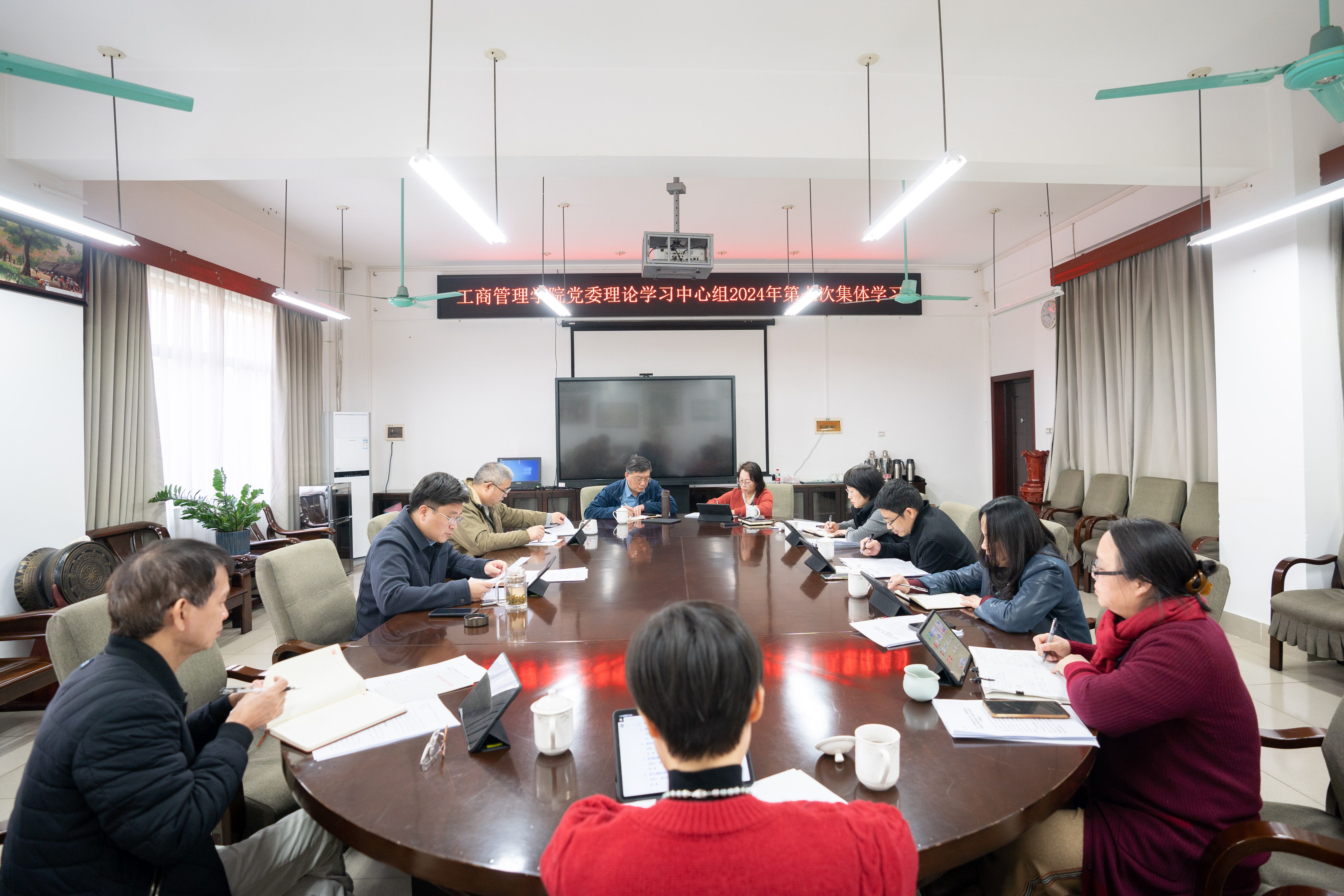 党委理论学习中心组召开2024年第7次集中学习会。学院党委书记黄晋主持会议并领学,学院党委理论学习中心组全体成员参加会议。