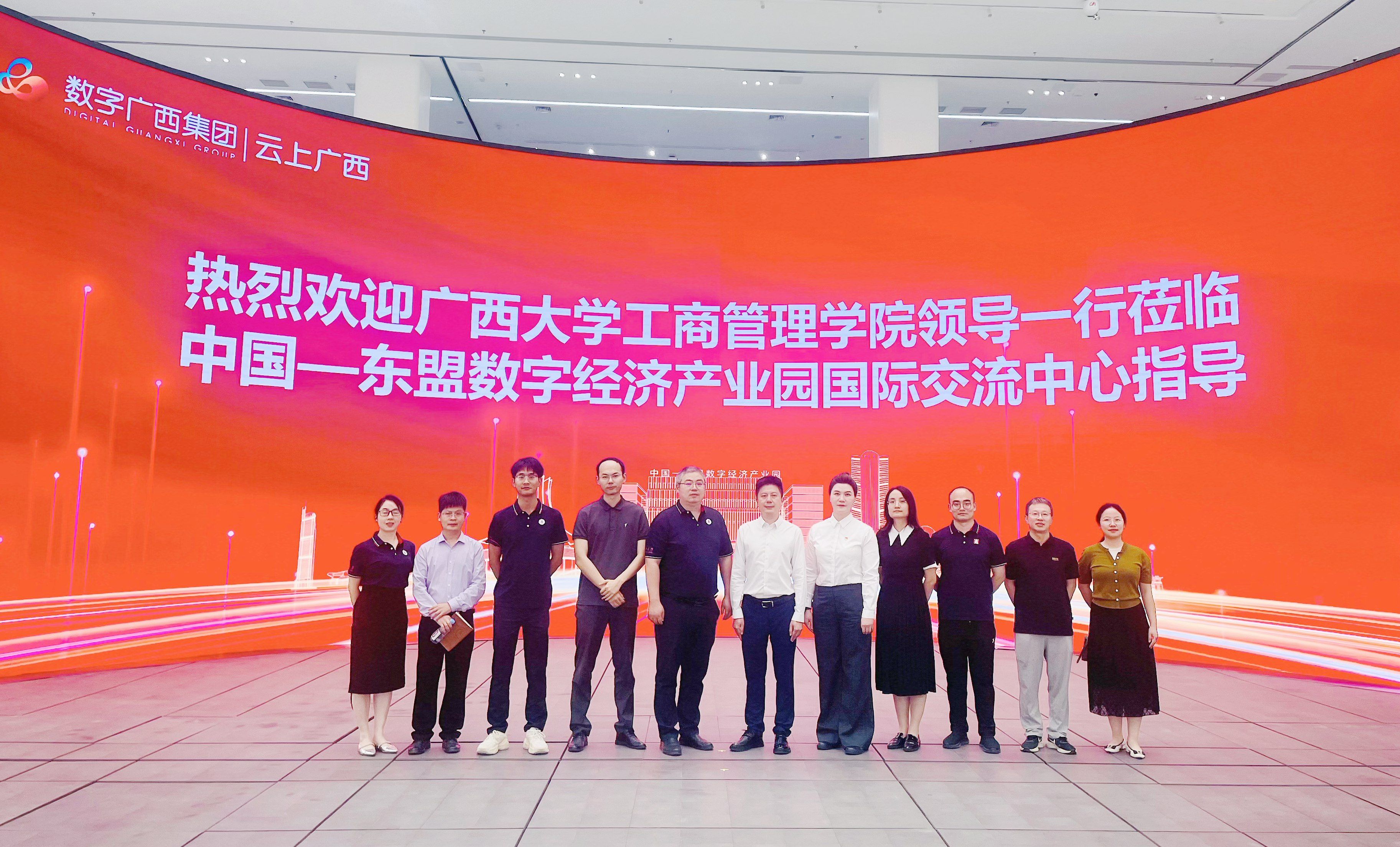在中国-东盟数字经济产业园,调研组受到广西数广全网融合科技有限公司副总经理周艳(2022级EMBA校友)及云上广西网络科技有限公司董事长刘学(2023级MBA学生)等的热情接待。座谈中,双方围绕重点研发项目联合申报、新能源算力中心、东盟舆情智库建设及数字创新实训基地共建等展开探讨。朱帮助表示,学院将发挥学科优势,助力企业数字化转型,打造服务中国-东盟数字经济发展的产学研标杆,推动“AI+行业”战略深度融合。