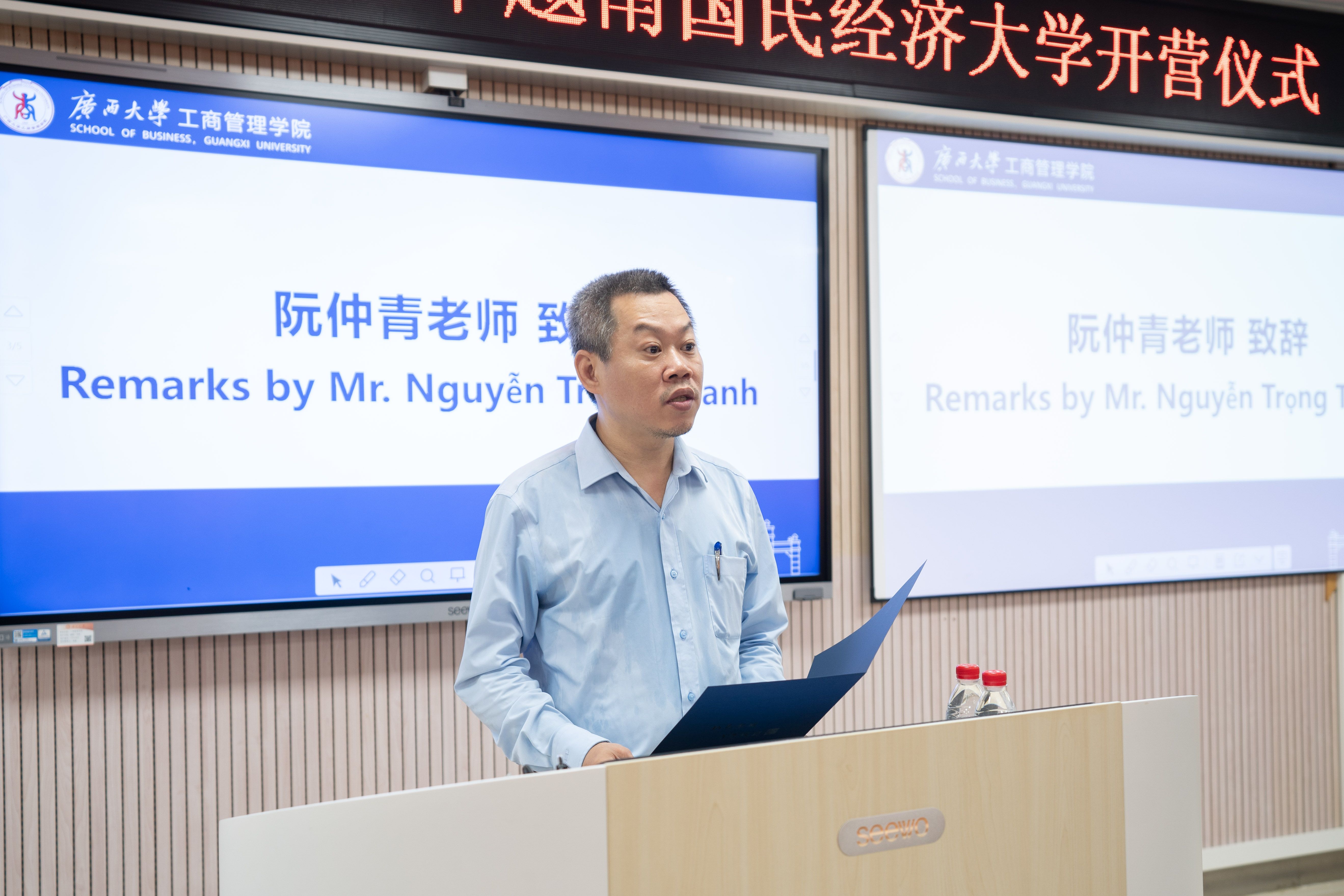 阮仲青老师在讲话中表达了越南国民经济大学对中越文化交流与青年友谊的双重期待,对老王磁力