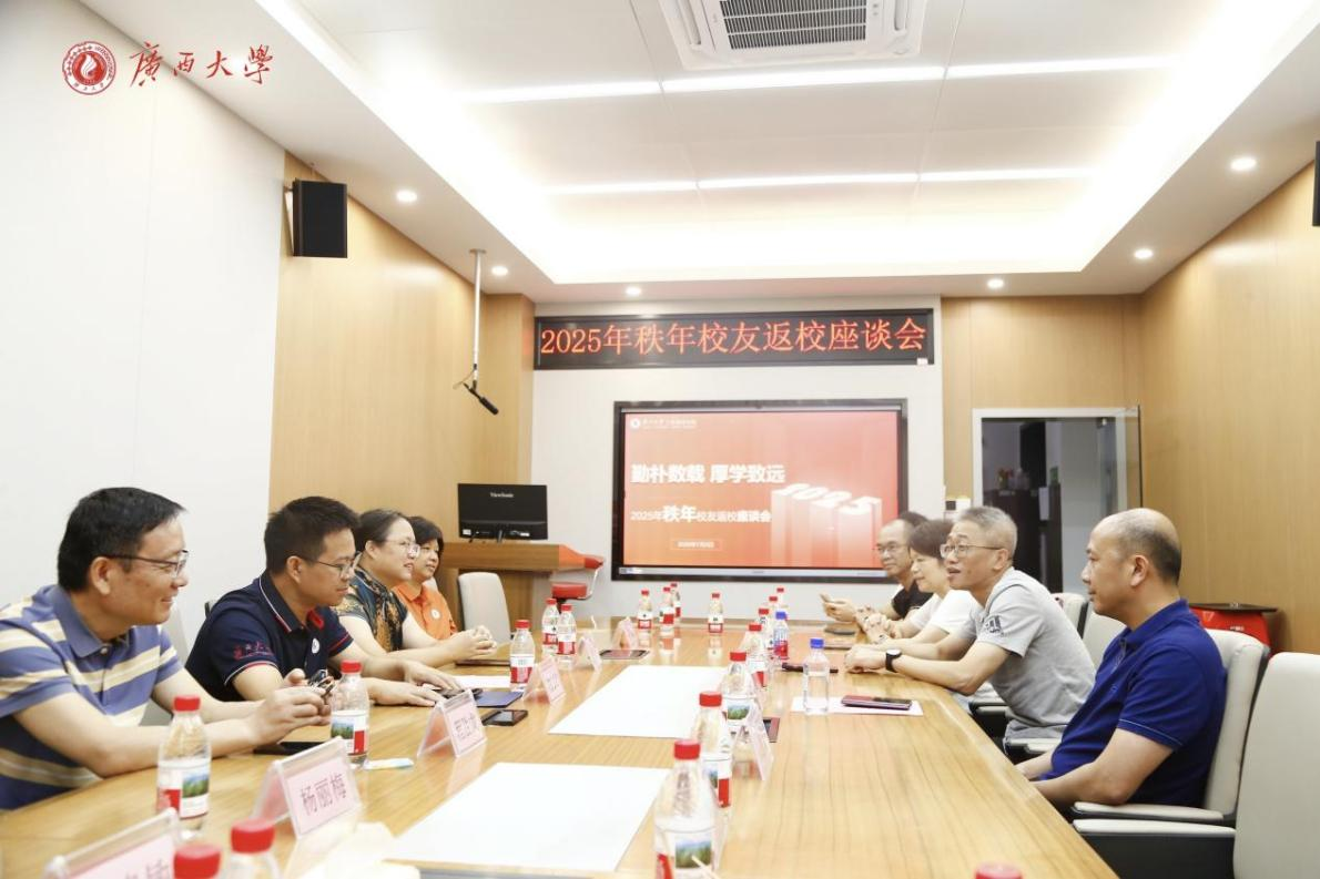覃朝勇对校友们的到来表示热烈欢迎,并简要介绍了学院近年来的发展变化。校友们逐一自我介绍,分享各自领域的成就与感悟,表达了对母校的眷恋和对学院发展的期盼。现场气氛温馨热烈,师生共话,为学院发展汇聚校友智慧。