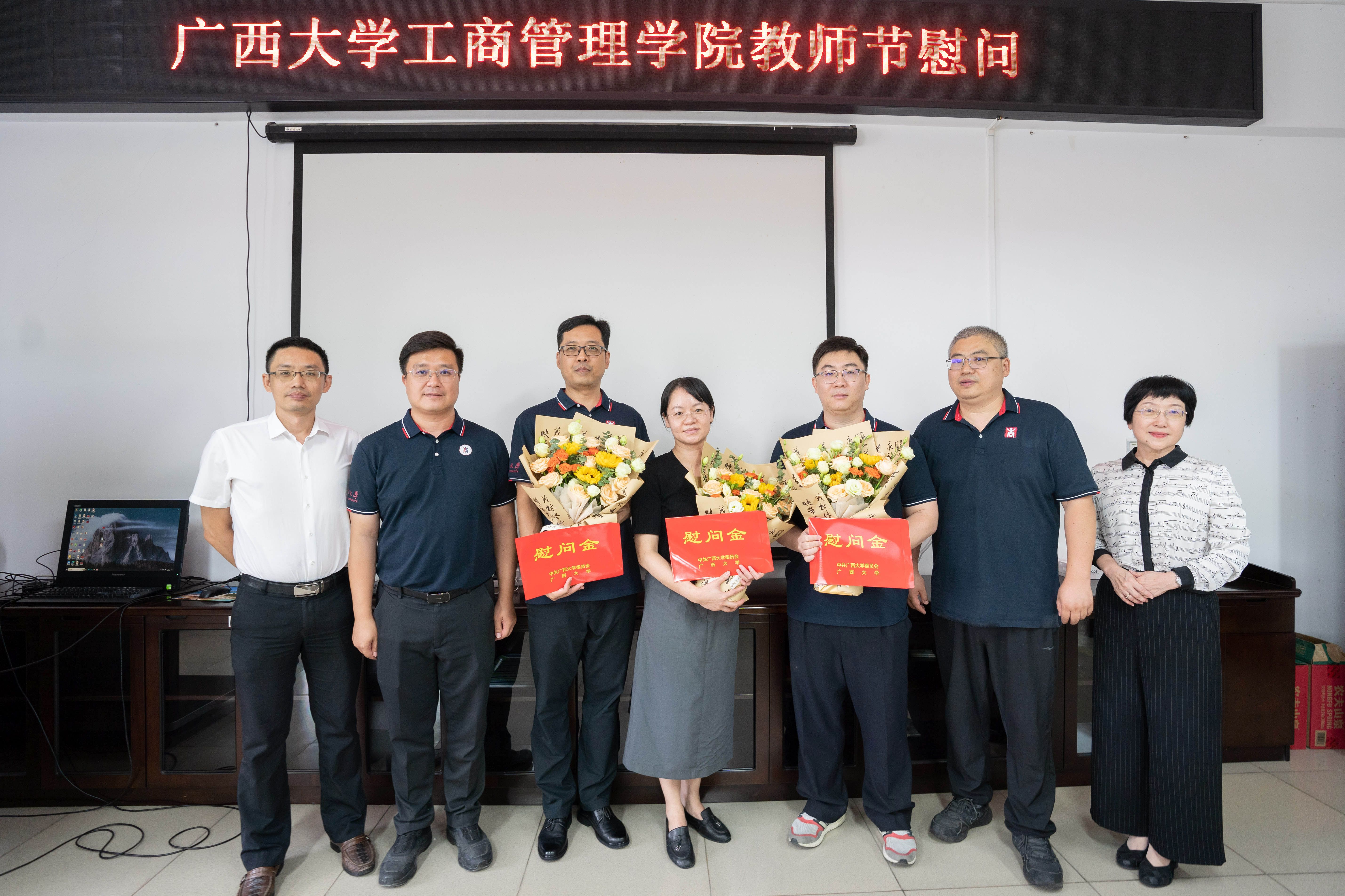 为弘扬尊师重教的优良传统,在第41个教师节来临之际,9月9日下午,学院党委书记黄晋、院长朱帮助代表学校看望慰问教师代表韦慧民、令狐大智、汤喆轶三位老师,为他们送上了鲜花、节日祝福和慰问金,传达学校、学院对广大教职员工的关心厚爱,向长期坚守教学科研一线的教育工作者致以节日问候与崇高敬意。
