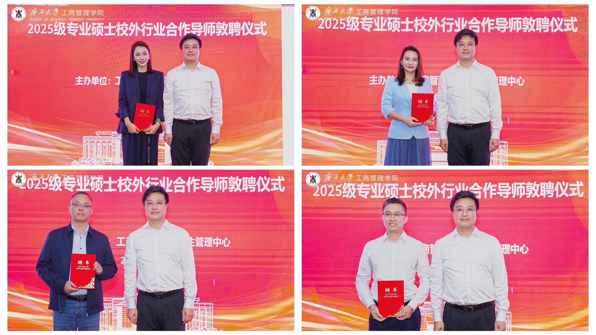在热烈的掌声中,黄晋为到场的79名2025级专业硕士校外行业合作导师颁发聘书,这意味着这些导师正式加入到学院的育人队伍中,与校内导师携手,共同为2025级专业硕士的成长和发展贡献力量。