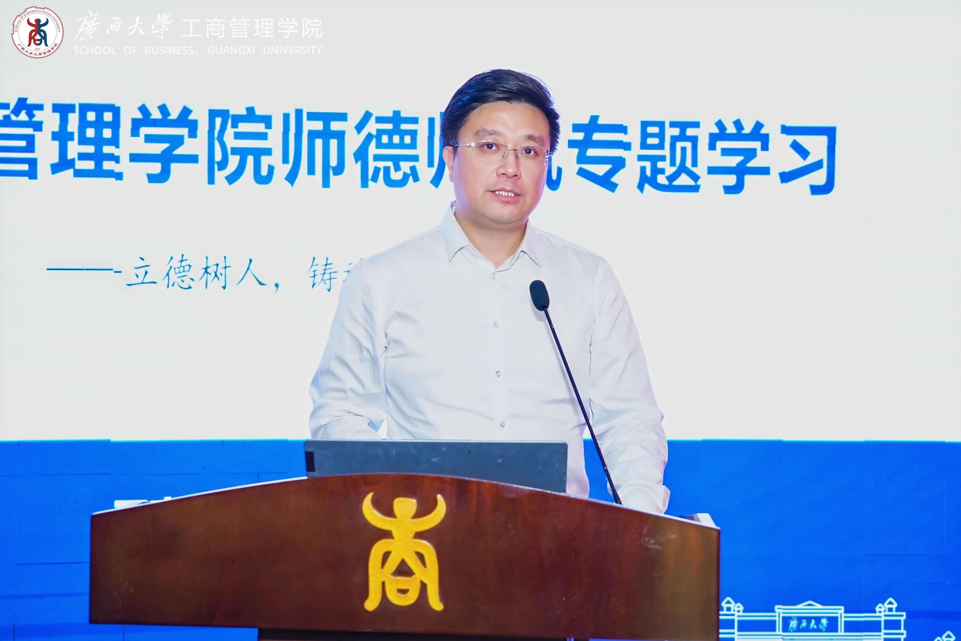 为加强校企合作,推动产学研深度融合,提升专业硕士培养质量,为学生搭建更广阔的职业发展平台,10月25日,学院在128报告厅举行2025级专业硕士校外行业合作导师敦聘仪式。学院党委书记黄晋、副院长韦铁,各专业硕士负责人、导师组组长、79名专业硕士合作导师代表出席活动。研究生管理中心主任、MBA教育中心主任叶映主持仪式。