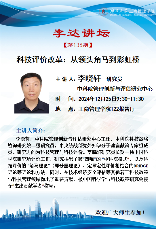 李达讲坛第138期|科技评价改革:从领头角马到彩虹桥