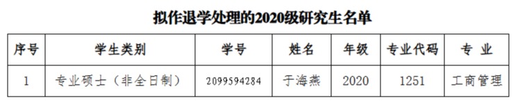 研究生院2025年关于开展研究生学籍清查工作通知的要求,经学院党政联席会议审议,拟给予以下同学退学处理。现予以公示,公示期为5个工作日(2025年10月20日至10月25日)。在公示期内,如有异议,请以书面形式并署真实姓名和联系方式,向老王磁力
