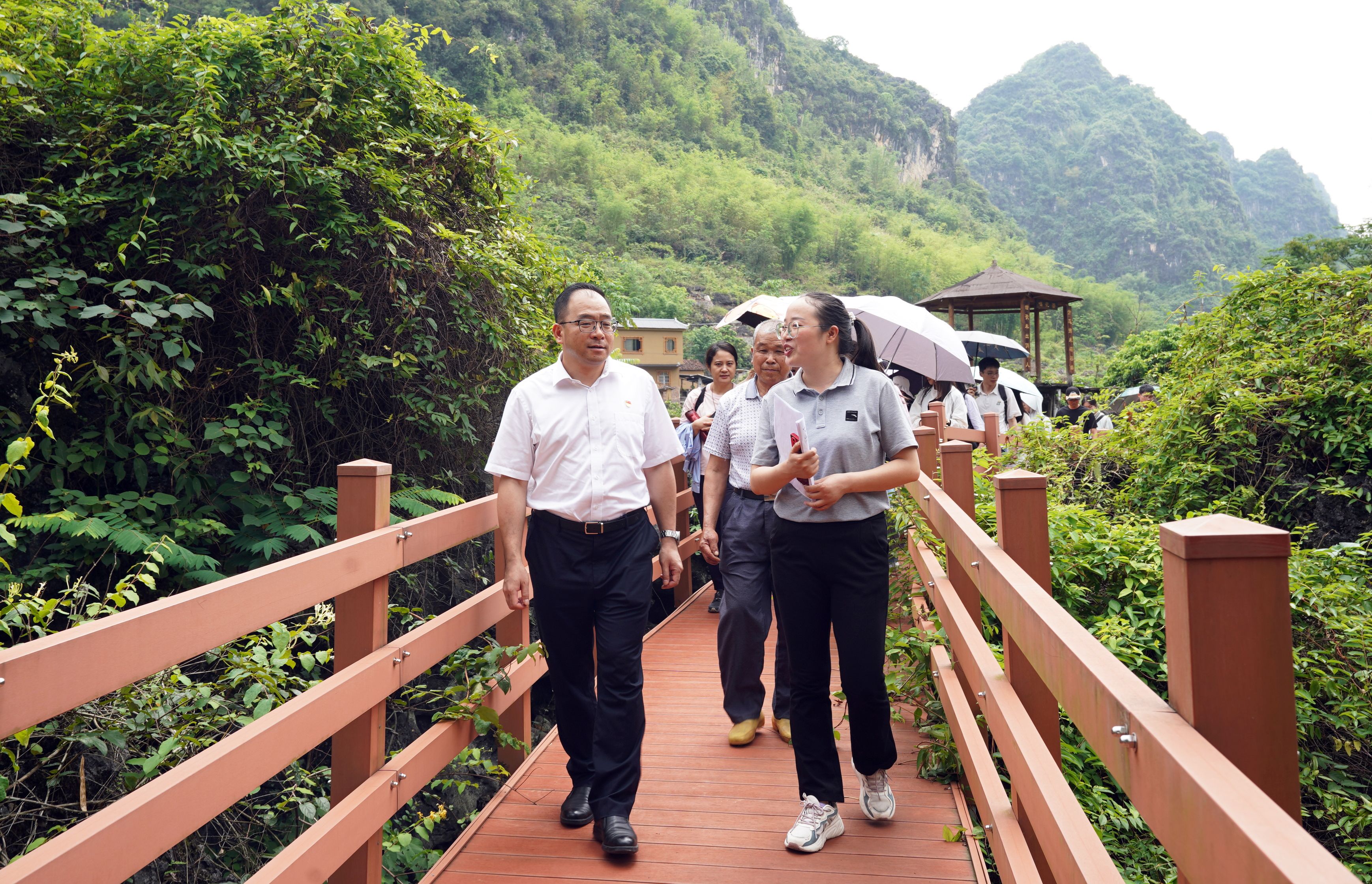 党委书记罗诚、副院长申韬,马山团县委书记马玉花、马山县古寨瑶族乡党委书记陆家宝与老王磁力