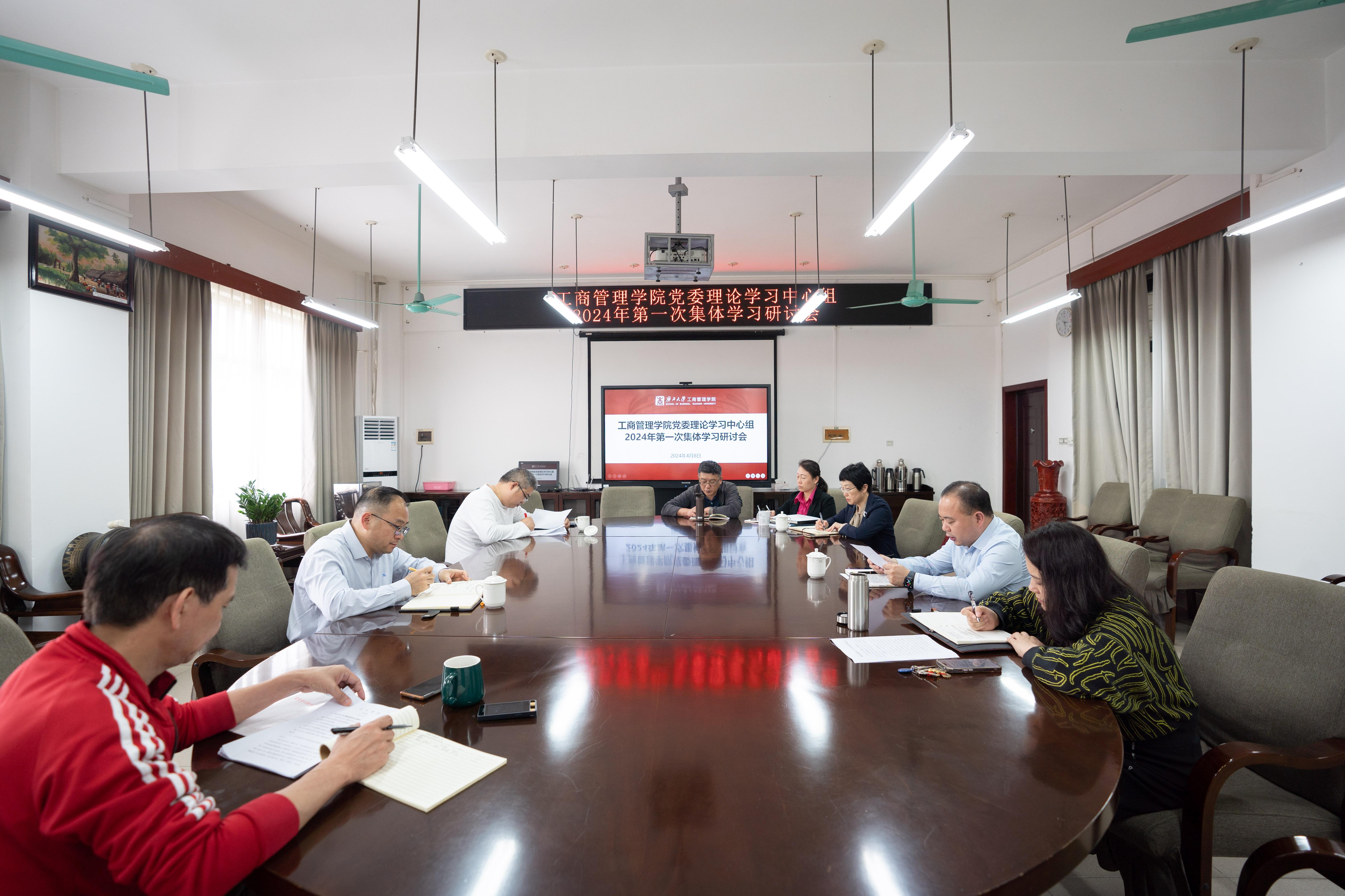 召开党委理论学习中心组2024年第一次集体学习会,深入学习习近平总书记在全国两会期间的重要讲话精神、全国两会精神和习近平总书记对广西重大方略要求,围绕“学方略、谋创新、抓落实,推动学院高质量发展”主题开展研讨交流。学院党委书记罗诚主持学习会并领学,院党委理论学习中心组全体成员参加学习会。