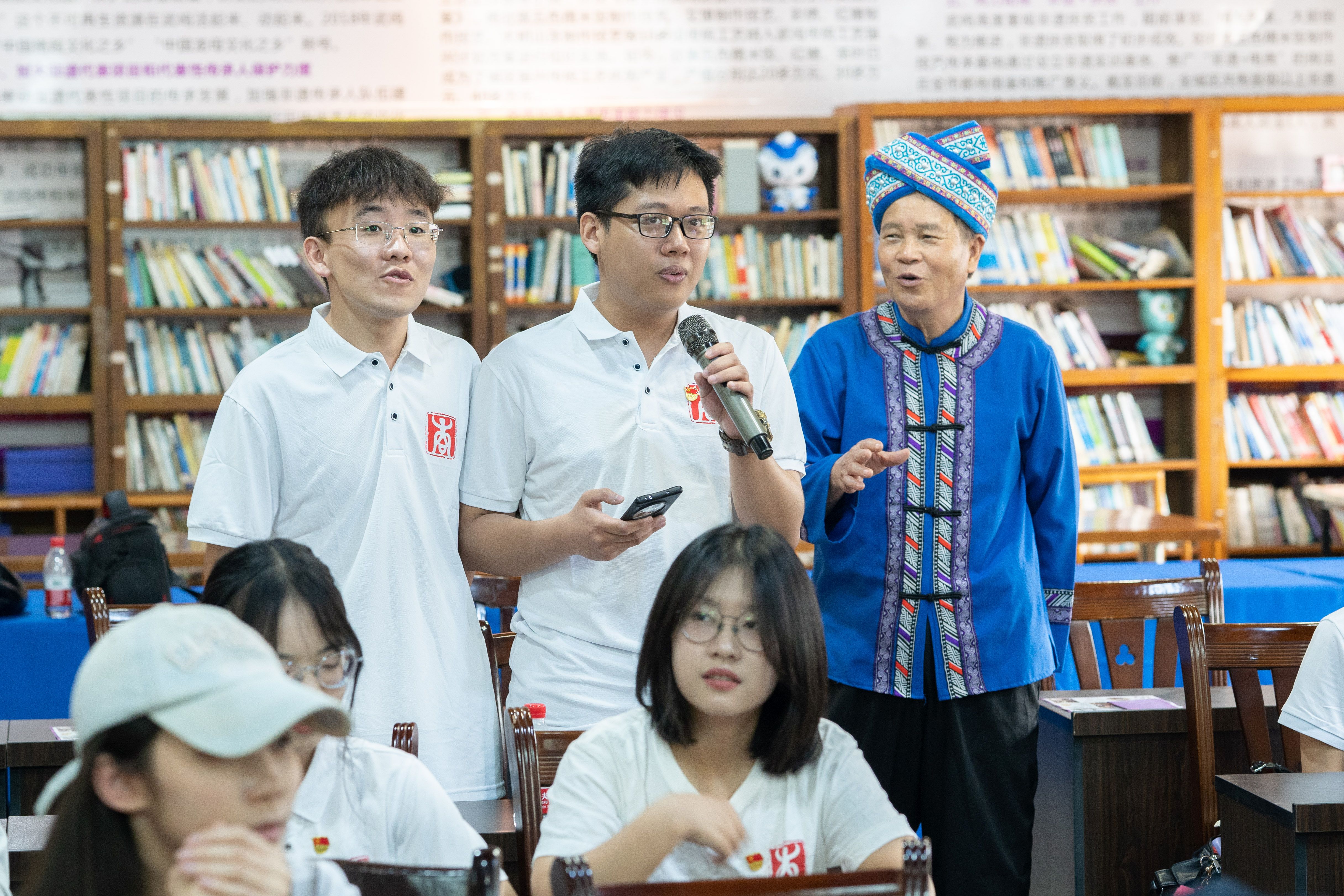 在民族文化体验环节,壮族山歌学习区成为了最热闹的地方。“壮乡花榴开,满岭花海结;客游主跟走,情结大中华……”悠扬的山歌声响起,师生们积极跟着当地的山歌传承人学唱武鸣壮族山歌,感受着山歌中所表达的情感和寓意。