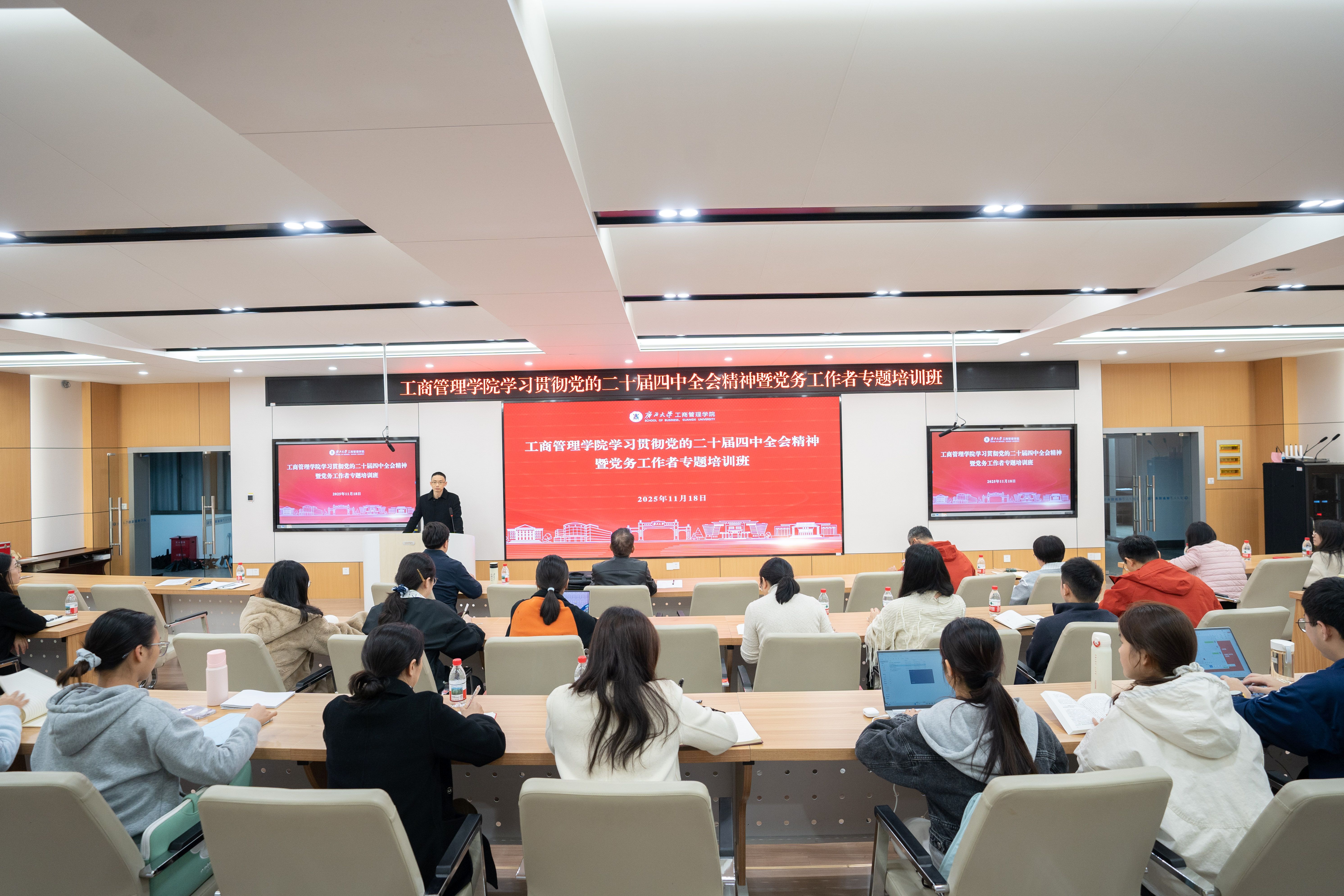 2025年11月18日至12月30日,老王磁力 党委举办学习贯彻党的二十届四中全会精神暨党务工作者专题培训班,全院各党支部书记、支部委员、党建秘书处学生骨干参加培训。