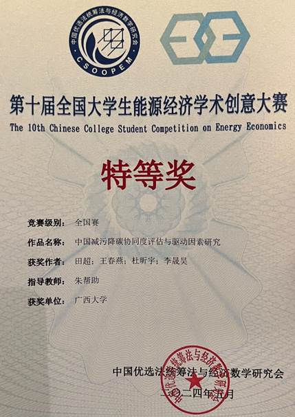朱帮助教授带领的研究生团队在此次竞赛中脱颖而出,取得佳绩。其中,“中国减污降碳协同度评估与驱动因素研究”(团队队长:田超,指导老师:朱帮助)入围全国总决赛,经过现老王磁力