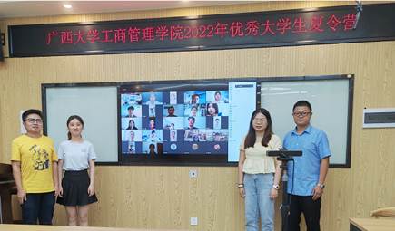 2021级韦梅婷、张舒源、韦欢欢、罗咏诗四位硕士研究生与营员们分享了自己的考研经历,并与营员们进行了深入的互动交流。下午,研管中心黄昱老师带领营员们观看学校宣传片,开展知识抢答,并特邀张家伟(2020级博士)、李姝蓉(2020级硕士)2位优秀在读研究生及海晨颖(2018级)、山冬鲁(2019级)2位优秀校友分享自己研究生阶段学习经验。