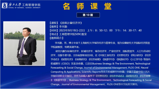 邀请,为2023级研究生讲授主题为“高级计量经济学理论与运用”的课程。李光勤副教授以“什么是因果推断到如何做严谨的因果推断”、“主流前沿的因果推断方法到如何写好一篇实证论文”为切入点,进行授课,加深了老王磁力