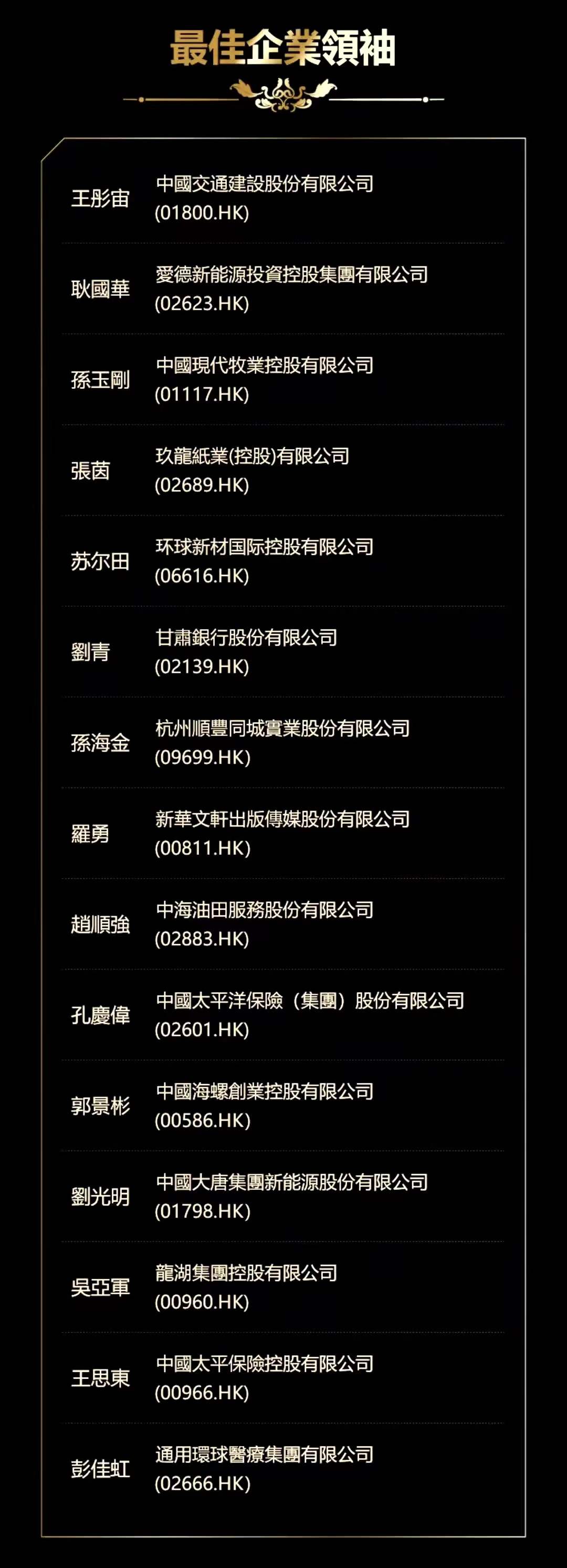 苏尔田能够获得最佳企业领袖大奖,代表了外部机构及香港资本市场对他企业管治工作的肯定,也是对公司经营管理成效的充分肯定,不仅有助于公司进一步展现企业价值,有助于帮助外部媒介、投资者进一步认识、了解公司,更有助于进一步提升公司市场地位和影响力。