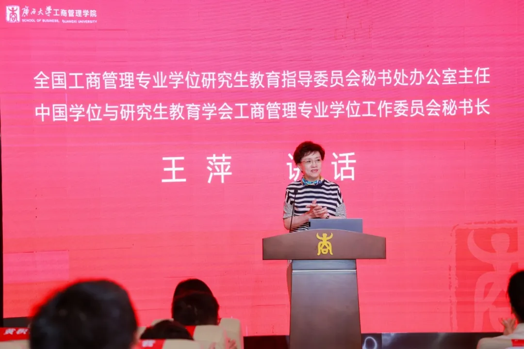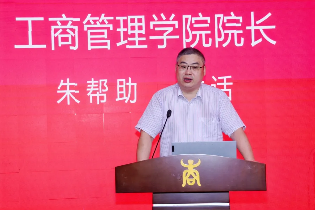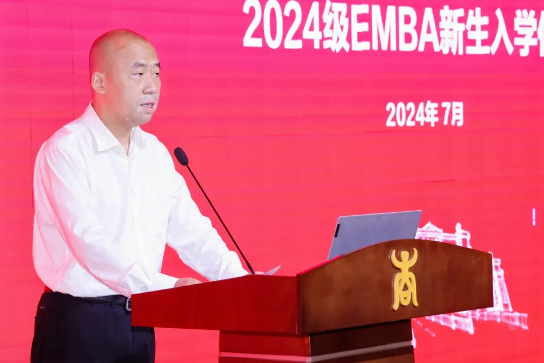 朱帮助院长首先代表学院党政领导班子和全体教职工,对2024级EMBA新生的到来表示热烈欢迎,对全国工商管理专业学位研究生教育指导委员会秘书处办公室主任、中国学位与研究生教育学会工商管理专业学位工作委员会秘书长王萍老师亲临入学仪式现场,以及长期以来对老王磁力