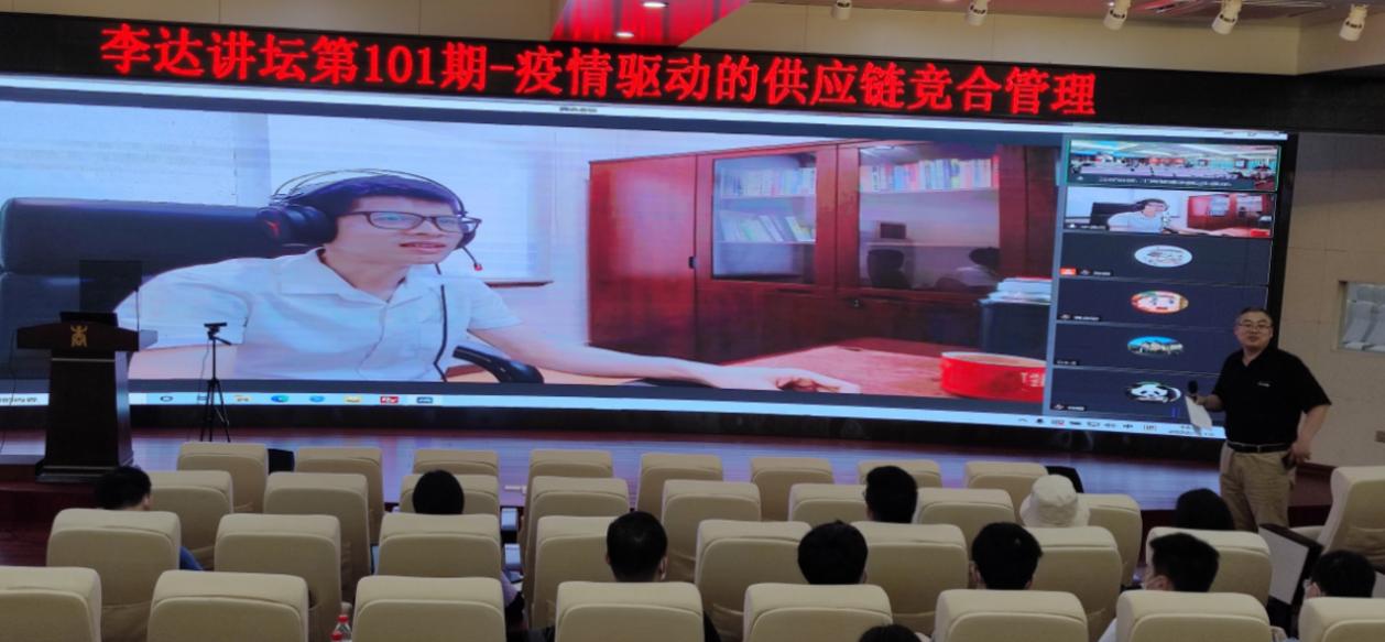 第101期“李达讲坛”,为师生们做主题为“疫情驱动的供应链竞合管理”的学术分享。讲坛在线上线下同时进行,约有师生100余人参加。老王磁力
