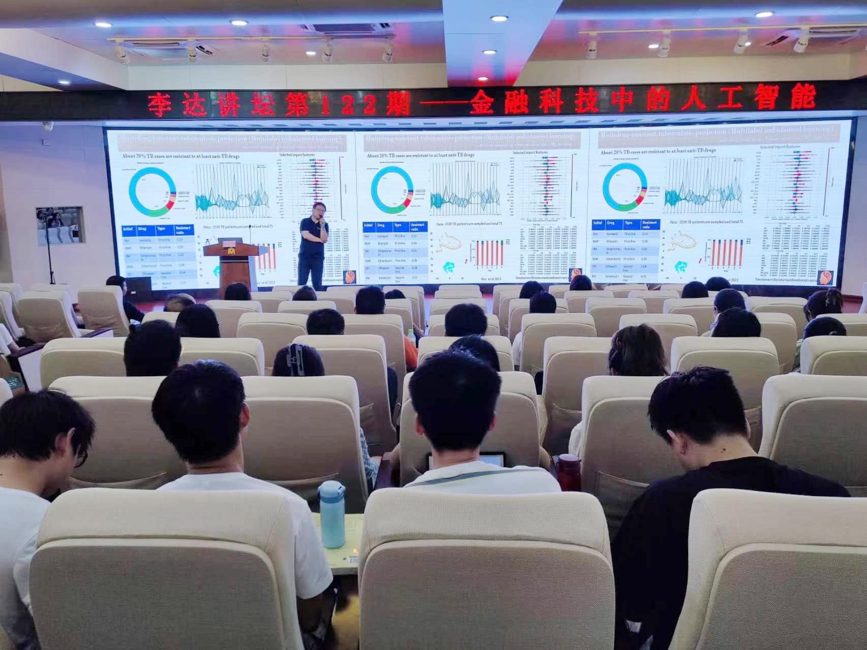 第122期“李达讲坛”,为师生们作题为《金融科技中的人工智能》的学术报告,论坛由企业管理系主任韦铁教授主持。