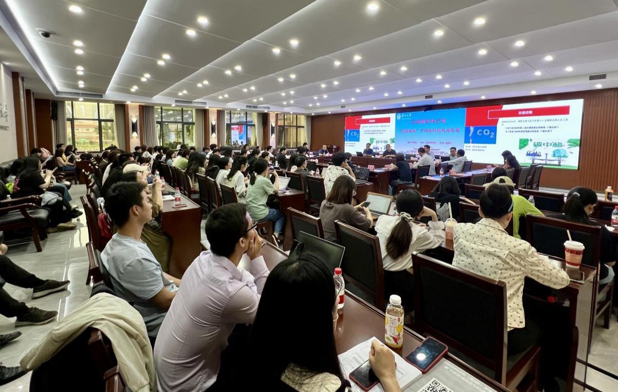 承办的第5期“汇学跨学科沙龙”在君武馆第二会议室举行。与会学者聚焦“‘双碳战略’下的区域挑战与机遇”主题,共同探讨在全球气候挑战加剧的情况下,如何化挑战为机遇,协同推进经济发展、绿色发展和可持续发展。